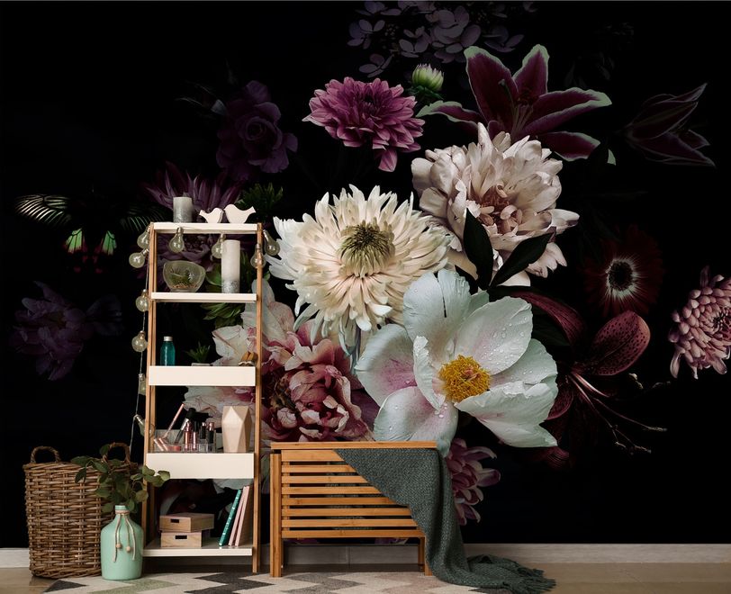 Introduce an amazing art piece into your room with our lovely Dark Garden Florals Wallpaper Mural. This beautiful mural will transform your walls into a charming place one can adore. Featuring oversized white, purple, pink and green flowers, a stylish and attractive look will make your walls unique. With its fresh and soft tones, these large flowers attract a lot of attention in your home. Bright flowers on a dark background will also create a vintage look that can match any home decors. Use this wallpaper in your living room, bedroom, dining room or entertaining space to have an impact on anyone.