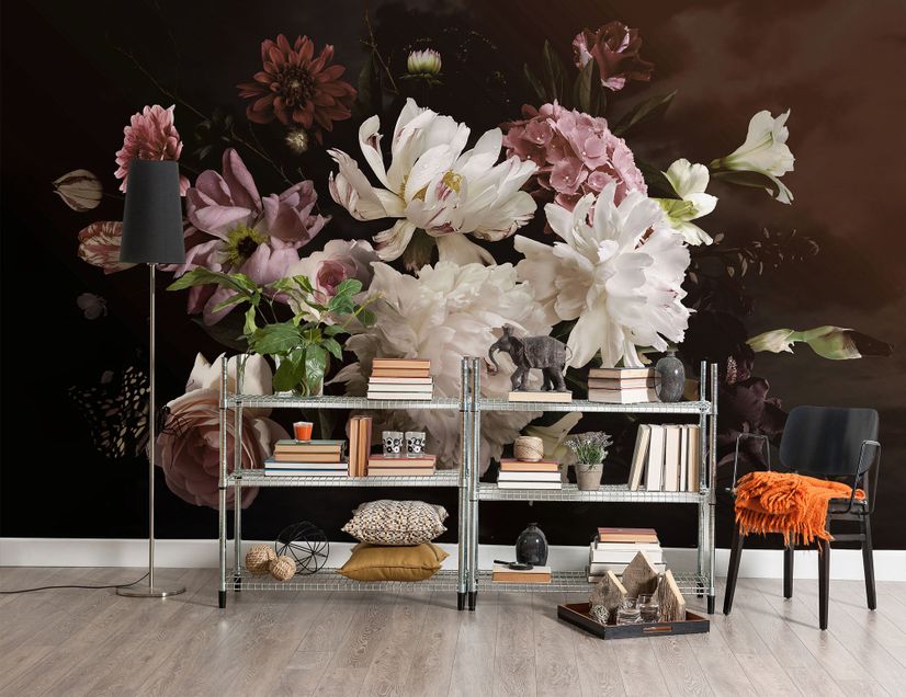 Transform your space with our Dark Peony Floral Bouquet Wallpaper Mural, a breathtaking homage to Renaissance still-life masterpieces. This dramatic design showcases luxurious white peonies and delicate roses in blush pink tones, emerging from a rich dark background with stunning luminosity. The composition artfully balances pristine white blooms with dusky pink dahlias and subtle hints of sage green foliage, creating an atmosphere of timeless elegance. Perfect for dining rooms, master bedrooms, or sophisticated living spaces, this wall mural brings museum-quality artistry to your walls. The romantic yet moody aesthetic makes this premium wallpaper an exceptional choice for those seeking to create a space that exudes both classical beauty and contemporary drama.