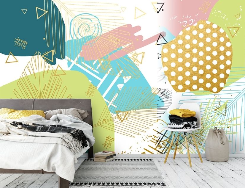 Infuse your space with artistic energy through our Geometric Colorful Brush Wallpaper Mural, a vibrant celebration of modern design. This statement wall mural combines bold brushstrokes and geometric shapes in a playful palette of teal, blush pink, lime green, and golden yellow, accented with metallic linear details. The dynamic composition balances organic brush patterns with structured geometric elements, creating a fresh, contemporary aesthetic. Perfect for creative studios, modern bedrooms, or design-forward office spaces, this premium wallpaper mural instantly transforms any room into an artistic showcase that radiates creative energy and sophisticated style.