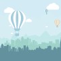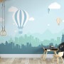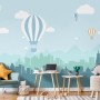 Transform your space with our Hot Air Balloon and Blue City Landscape Wallpaper Mural, a serene urban dreamscape that captures the essence of adventure and tranquility. This expansive wall mural features a mesmerizing cityscape silhouette in graduated blue-grey tones, creating a sophisticated depth effect against misty mountains. Whimsical hot air balloons in soft blue, sage, and gentle beige drift peacefully across a powder-blue sky dotted with pristine white clouds. Perfect for modern nurseries, creative office spaces, or contemporary living areas, this mural creates an atmosphere of endless possibilities and urban sophistication. The minimalist color palette and dreamy composition make it an ideal choice for those seeking to add a touch of wanderlust to their space while maintaining a calming, professional atmosphere. This premium wallpaper seamlessly blends metropolitan charm with a sense of escape, making any room feel both grounded and inspirational.