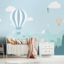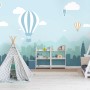 Nurseries and kids’ bedrooms work well with softer palettes and open sky around the motif. Playrooms handle bolder clusters. In living rooms or hallways, choose refined styles such as vintage airships or map details so the look reads more grown-up.