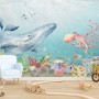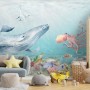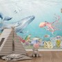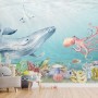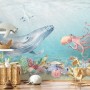 Dive into an enchanting underwater adventure with this delightful Kids Cute Whale Undersea Wallpaper Murals. A gentle humpback whale swims gracefully alongside a playful coral-pink octopus in a vibrant turquoise ocean. The seafloor bursts with life, showcasing a colorful array of coral reefs, swaying seaweed, and tropical fish in cheerful yellows and blues. Delicate details like the graceful manta ray, curious sea turtle, and shimmering starfish create an engaging scene that sparks imagination. Perfect for children's bedrooms, playrooms, or nurseries, this premium wallpaper mural transforms any space into an underwater wonderland where young minds can explore and dream of oceanic adventures.