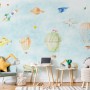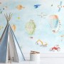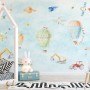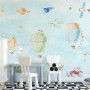 Let your little one's imagination soar with our Kids Hot Air Balloons Wallpaper Mural. This enchanting wall mural combines whimsical hot air balloons in soft pastels with an exciting array of construction vehicles, airplanes, rockets, and space elements against a dreamy sky-blue background. The delicate watercolor style brings gentle warmth to the playful scene, featuring charming details like colorful bunting, twinkling stars, and floating satellites. Perfect for nurseries, children's bedrooms, or playrooms, this premium wallpaper creates an inspiring atmosphere that sparks creativity and adventure. The balanced mix of celestial and earthbound elements makes this mural an ideal choice for young dreamers who love both cosmic exploration and construction machinery.