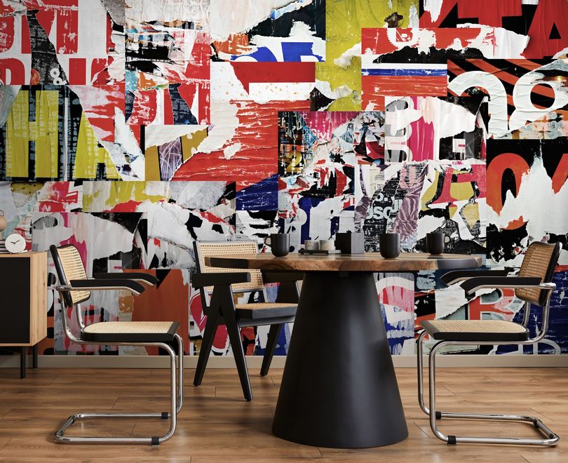 Bring urban energy into your space with our Street Collage Art Wallpaper Mural, a vibrant celebration of contemporary street art culture. This dynamic wall mural features a captivating collage of torn posters and bold typography in an energetic palette of reds, yellows, blues, and blacks. The layered, weathered effect creates an authentic street art aesthetic that adds instant character to any room. Perfect for modern lofts, creative studios, or statement walls in contemporary homes, this wallpaper mural captures the raw, artistic spirit of city life. Each torn edge and overlapping design tells a story, creating an edgy yet sophisticated atmosphere that works brilliantly in urban-inspired interiors.