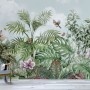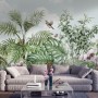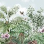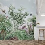 Bring the enchanting harmony of nature indoors with our Tropical Leaves with Birds and Florals Wallpaper Mural. This exquisite wall mural captures a lush tropical paradise in delicate watercolor style, featuring verdant monstera leaves, graceful palm fronds, and elegant orchids in soft pink hues. Charming songbirds and fluttering butterflies add life and movement to the scene, while the gentle sky-blue background creates a serene atmosphere. Each botanical element is rendered with exceptional detail, creating a sophisticated yet whimsical garden effect. Perfect for bringing a breath of fresh air to your living room, bedroom, or home office, this premium wallpaper mural beautifully merges botanical artistry with contemporary design, creating a space that feels both refreshing and refined.