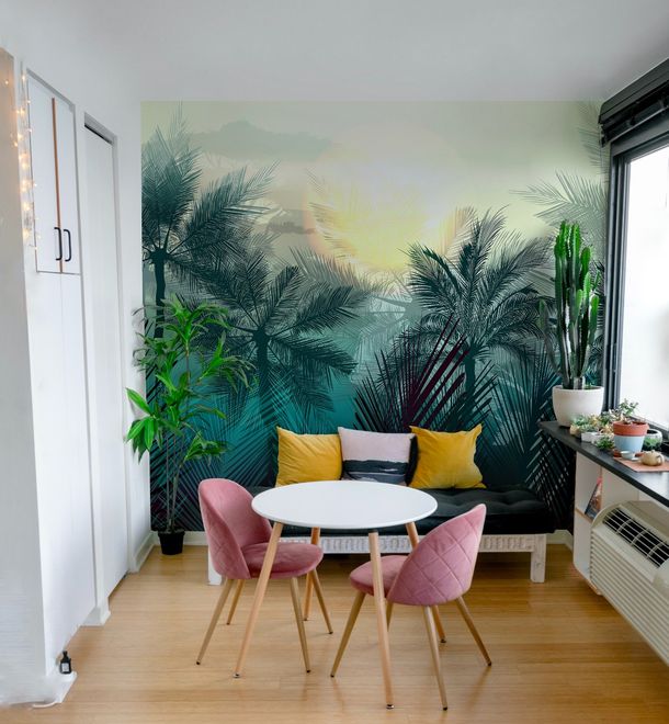 Introduce your interior into this magical view with our Tropical Palm Trees and Sunlight Wallpaper Mural. A design that will be the focal point in your home will give a relaxing mood that is going to be admired by your close ones. Our charming mural features tropical palm trees which adds a delightful touch to the mural. The dark and light green tones and the sunlight display the beauty of nature in the most stylish way which is also mesmerizing. This tropic-inspired mural also is matchable with different color schemes for any room. It is a perfect choice for a living room, bedroom, dining room, and kitchen.