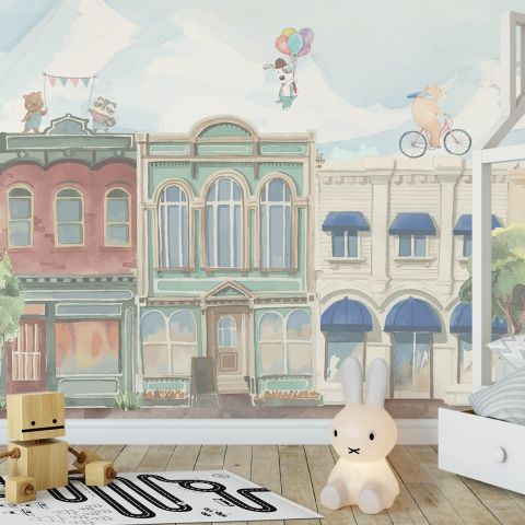 Nurseries and kids’ bedrooms work well with softer palettes and open sky around the motif. Playrooms handle bolder clusters. In living rooms or hallways, choose refined styles such as vintage airships or map details so the look reads more grown-up.