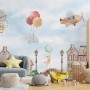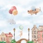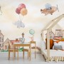 Bring whimsical charm to your little one's space with our Watercolor Cute Houses with Flying Animals Wallpaper Mural for Kids, a delightful cityscape filled with magical adventures. This enchanting wall mural features adorable animals soaring through cloudy skies - from a lazy sloth in a hot air balloon to a playful elephant floating with balloons, and a brave bear piloting an airplane. Below, charming European-style houses in soft pastels create a cozy village scene, complete with warm glowing lampposts and a quaint bridge. Perfect for nurseries, children's bedrooms, or playrooms, this whimsical wallpaper mural creates a gentle, dreamy atmosphere that sparks imagination and brings sweet dreams to your little adventurer.
